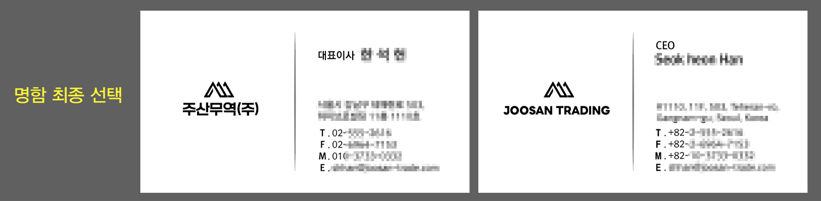 여러 가지 명함시안중 최종 선택하신 명함 시안입니다