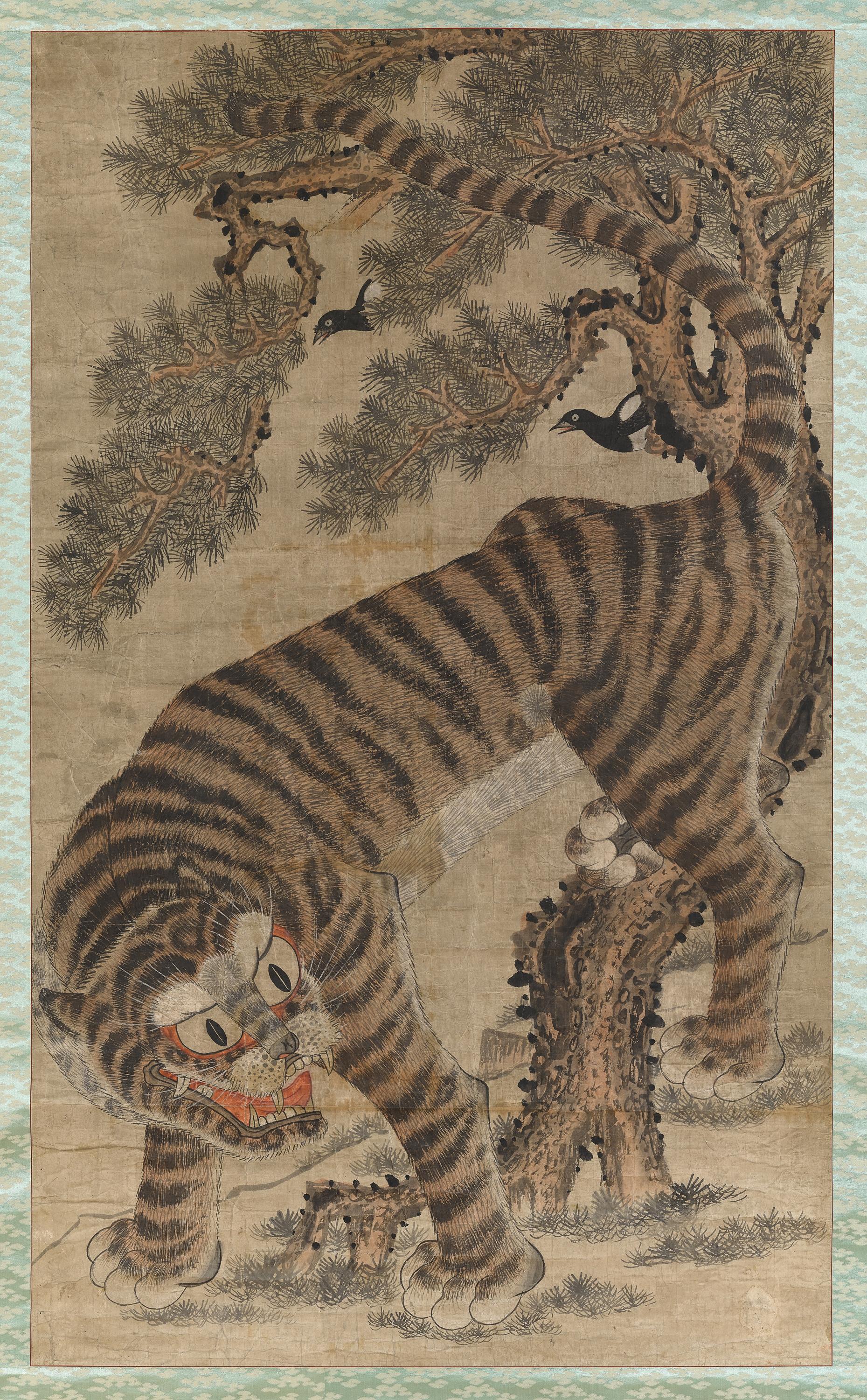 '작호도'는 까치와 호랑이를 함께 그린 민화로,