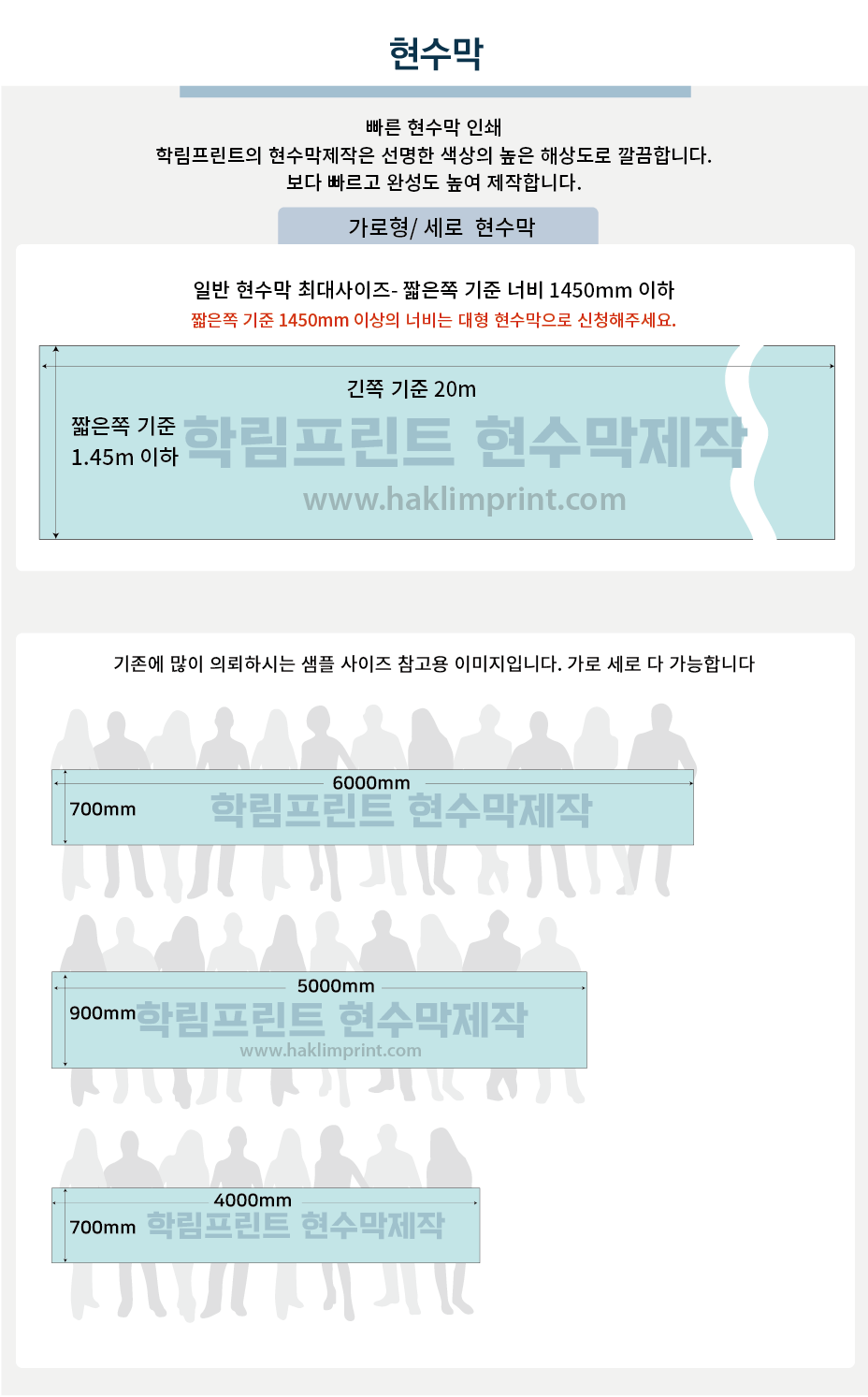 현수막 사이즈는 원하시는대로 제작이 가능합니다.