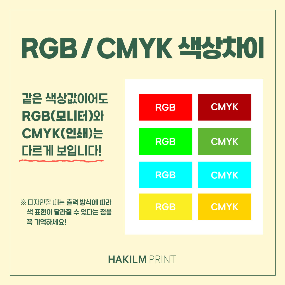 출력 방식에 따라 색 표현이 달라질 수 있다는 점을 꼭 기억하세요!