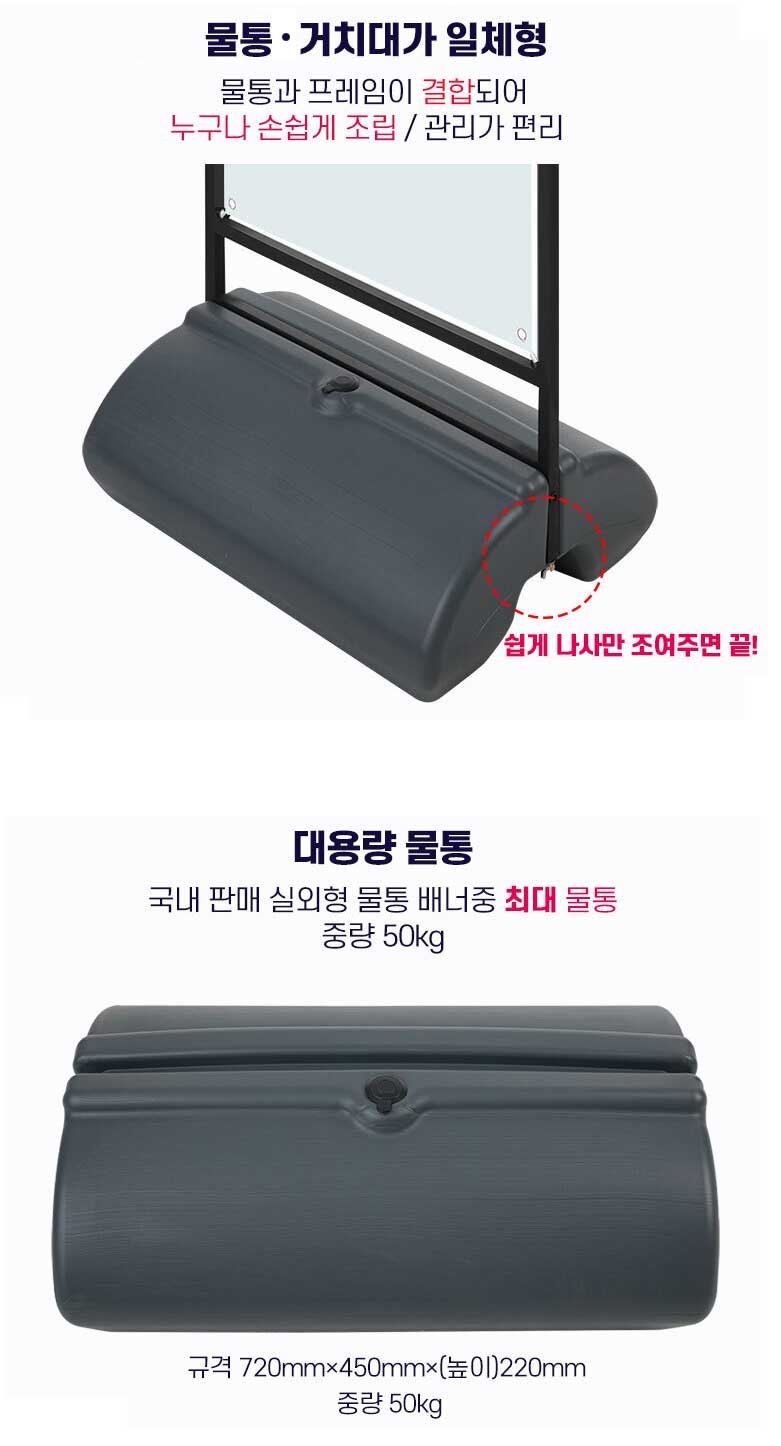 실외에서 사용할 경우에는 물통형 철제배너를 추천드려요.