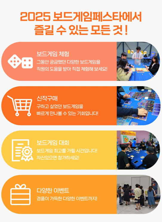 다양한 신작 보드게임 체험부터 인기 게임 대회, 현장 이벤트까지