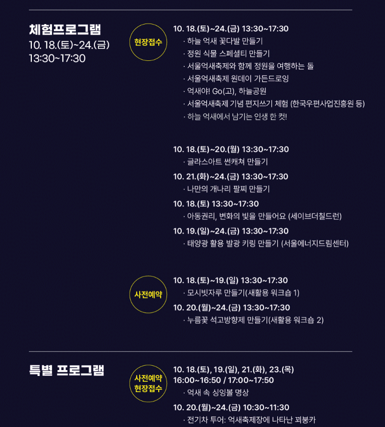 | 기간 | 2025년 10월 18일(토) ~ 10월 24일(금) |