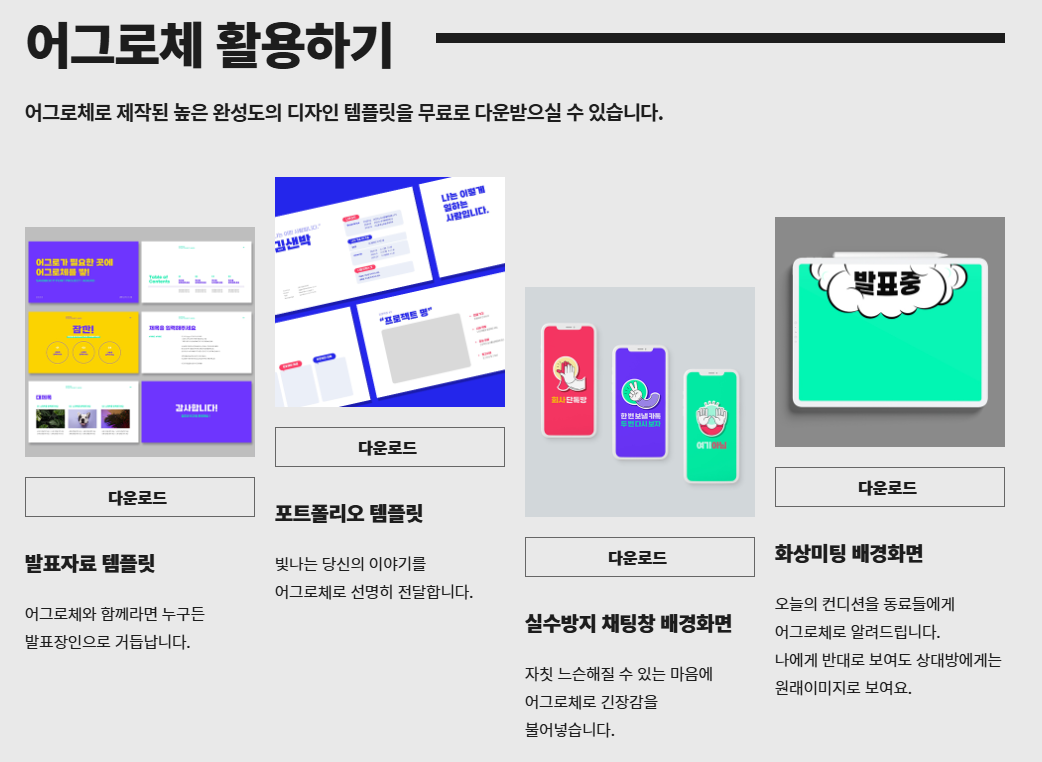 🔼다운로드 페이지 가보면 다양한 어그로체를 활용한