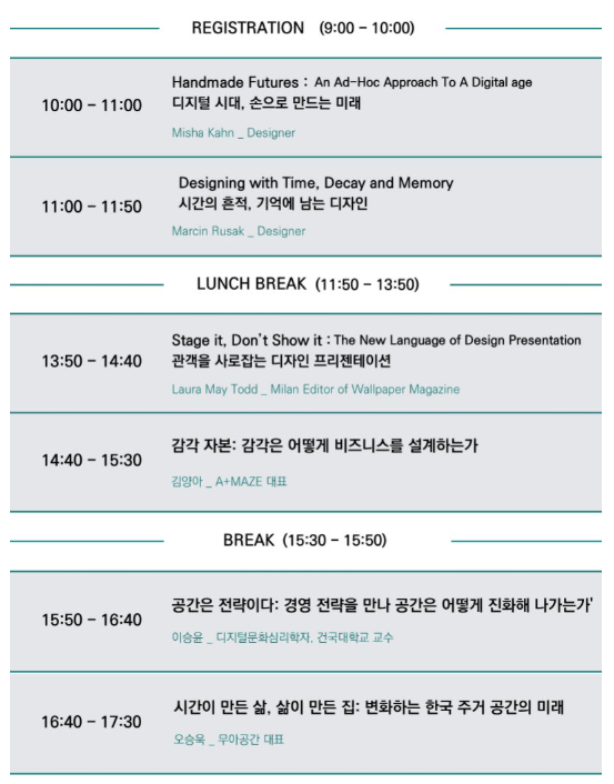 디자인 업계 종사자뿐 아니라 공간에 관심 있는 일반인에게도 유익한 토론과 발표가 펼쳐지는 자리입니다
