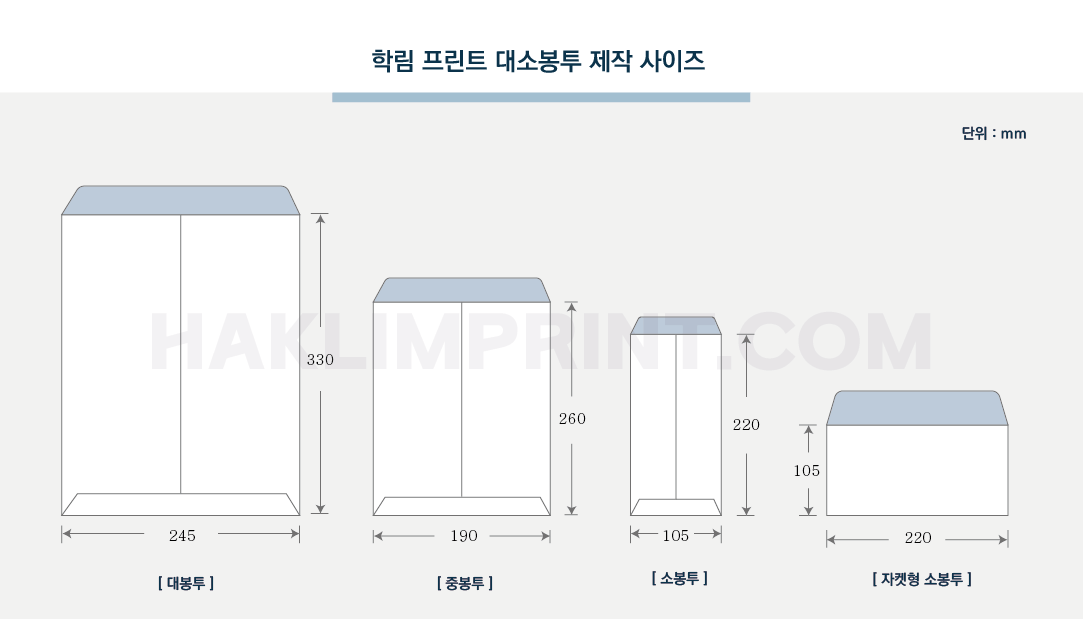 대봉투와 함께 소봉투, 중봉투 제작 가능합니다