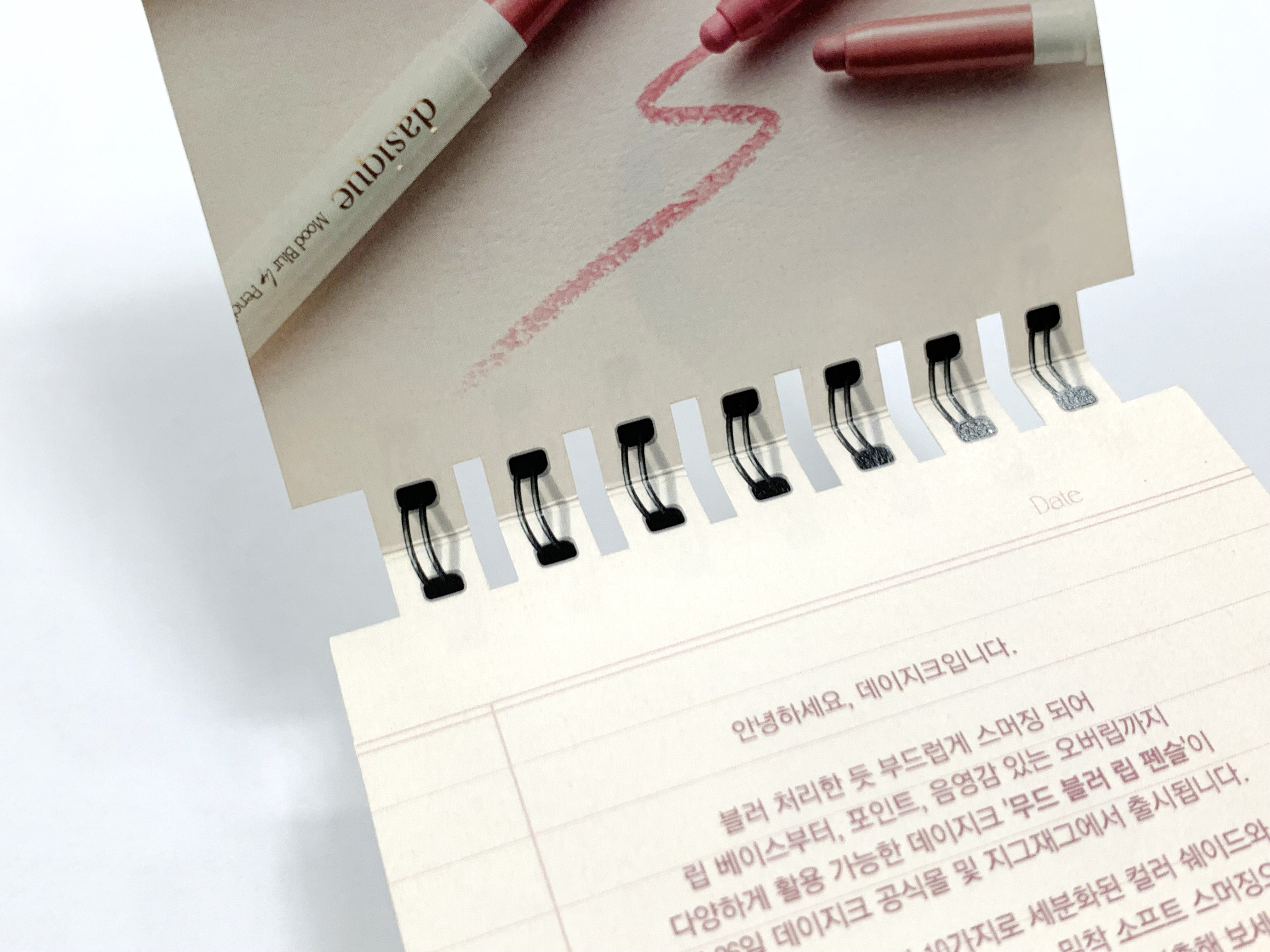 실제 수첩처럼 연출을 위해 스프링 디자인의 중간 중간을