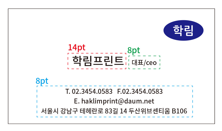 명함 크기, 디자인에 따라 폰트 크기는 달라질 수 있습니다.