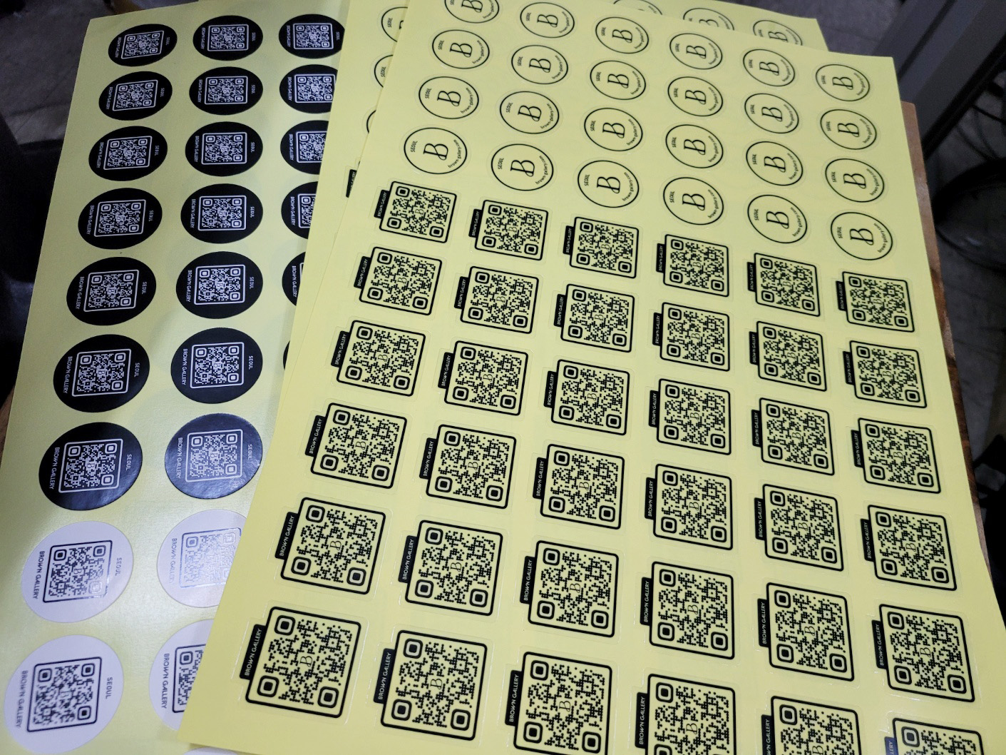 브라운갤러리의 로고 및 QR코드 넣은 스티커 제작 드렸습니다.
