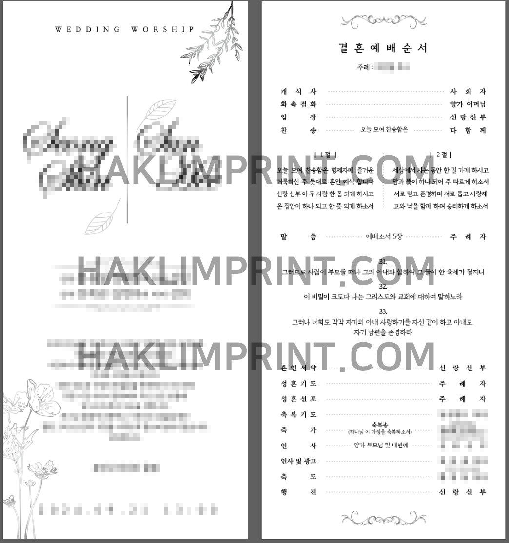 [결혼식 식순지] 예배식순지 제작도 학림프린트에서