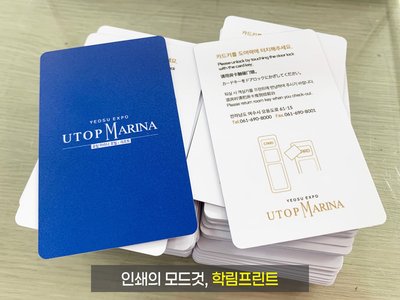 이번에 제작한 여수 ‘유탑 마리나 호텔&리조트’ 카드키 사례를 통해 보여드릴게요!