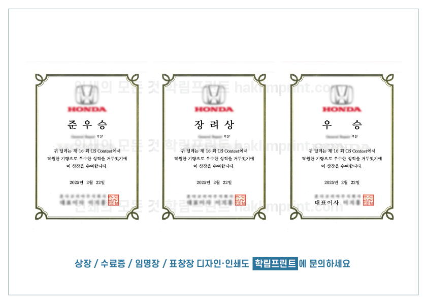 저희 학림프린트는 상장 디자인부터 인쇄까지 한 번에 가능합니다.